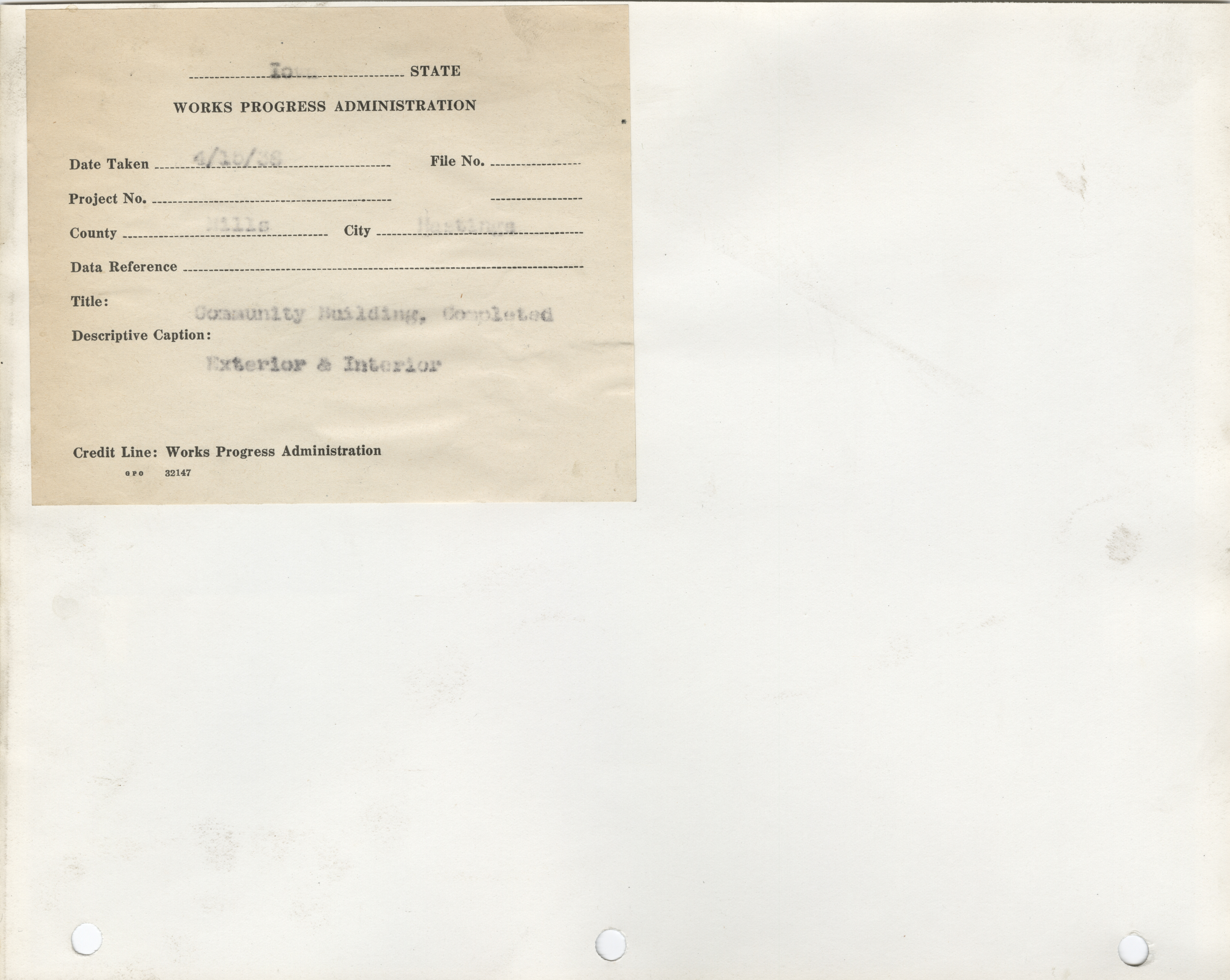 - Public Buildings. Mills County. Hastings. Community Building. (2 b/w photographs), 1938