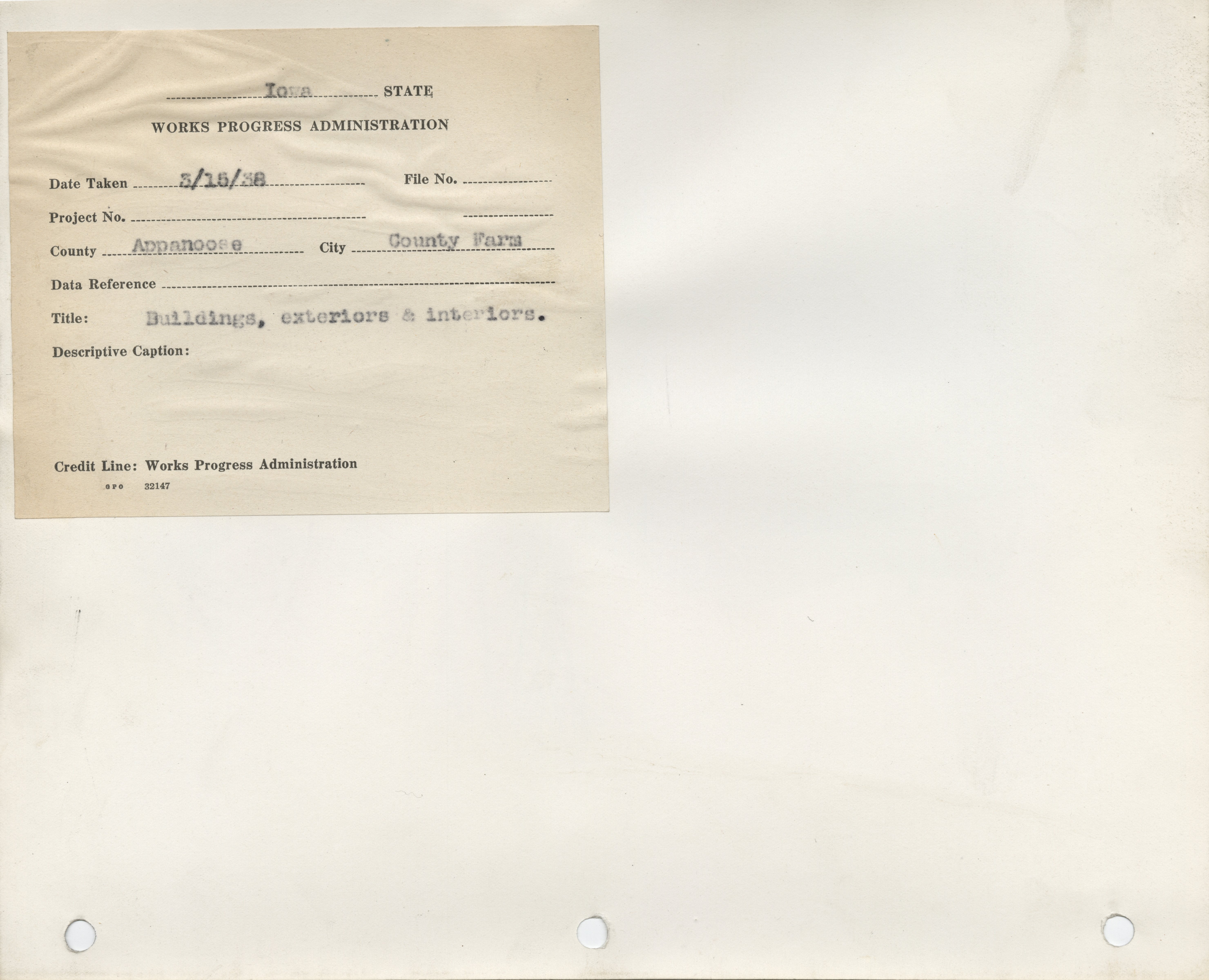 - Public Buildings. Appanoose County. County Farm Buildings. (1 b/w photograph), 1938