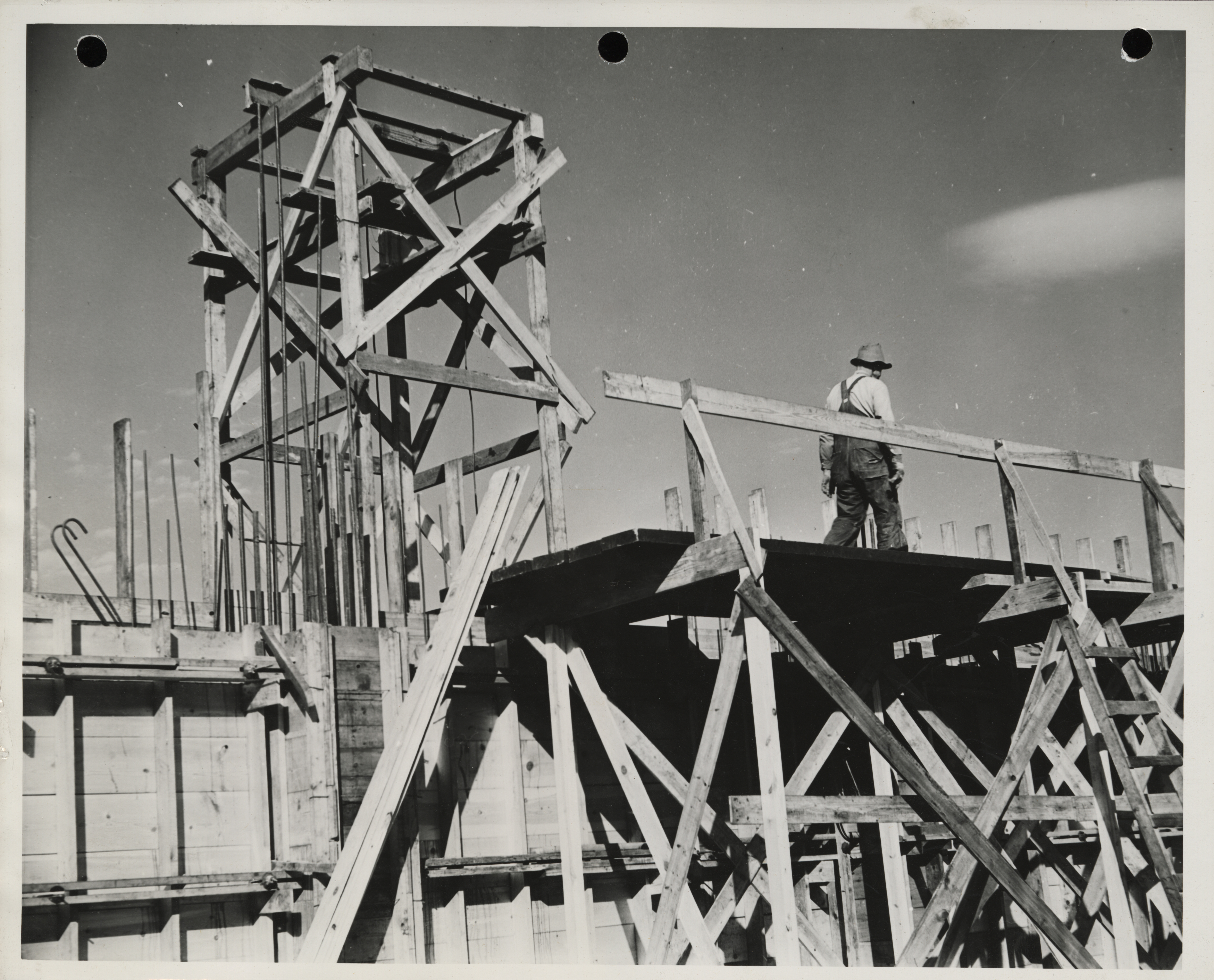 - "Photograph of a person constructing the city maintenance and equipment garage in Muscatine", Work Projects Administration (Iowa) Photographs, Iowa State University Library Digital Collections