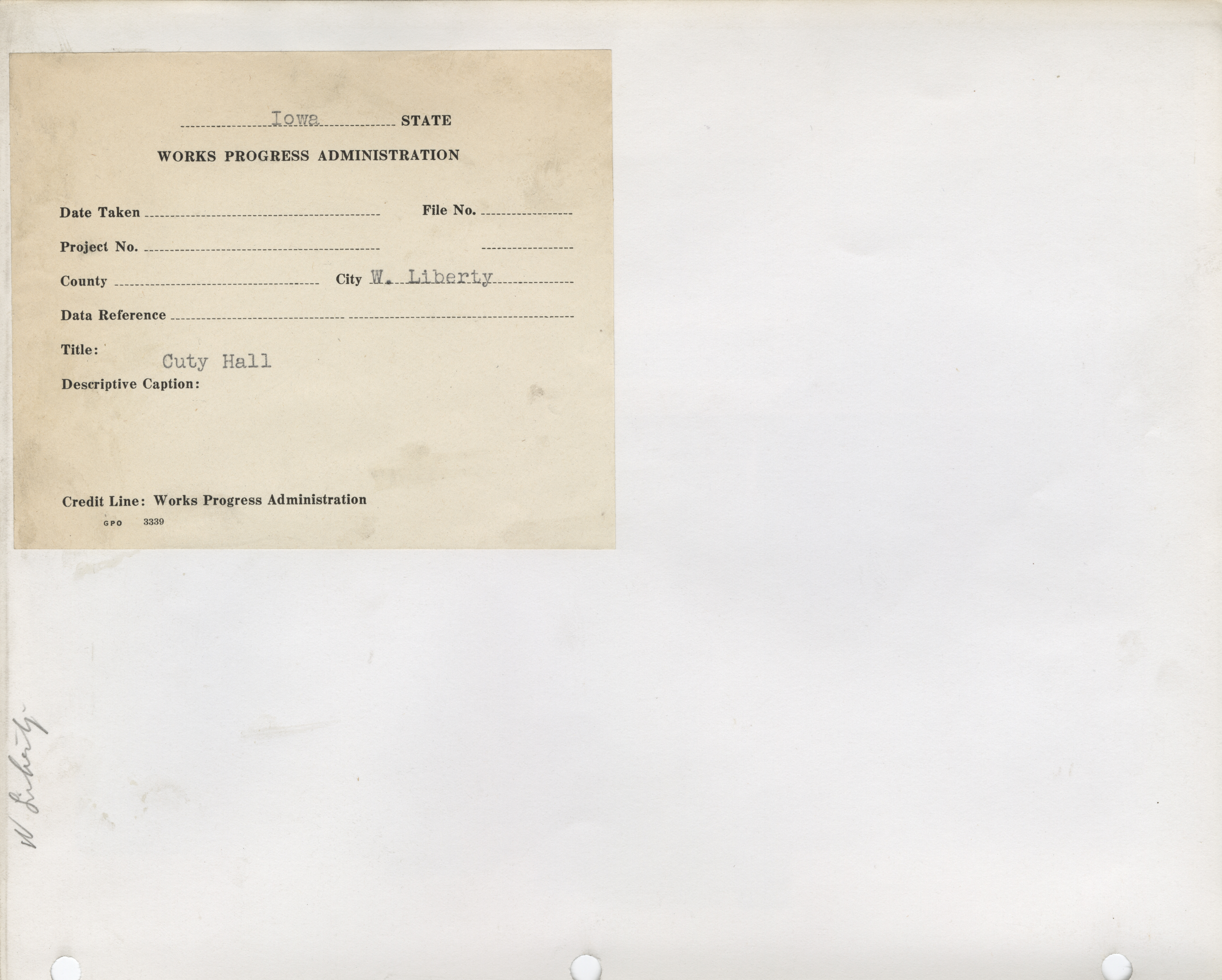 - "Photograph of city hall in West Liberty", Work Projects Administration (Iowa) Photographs, Iowa State University Library Digital Collections