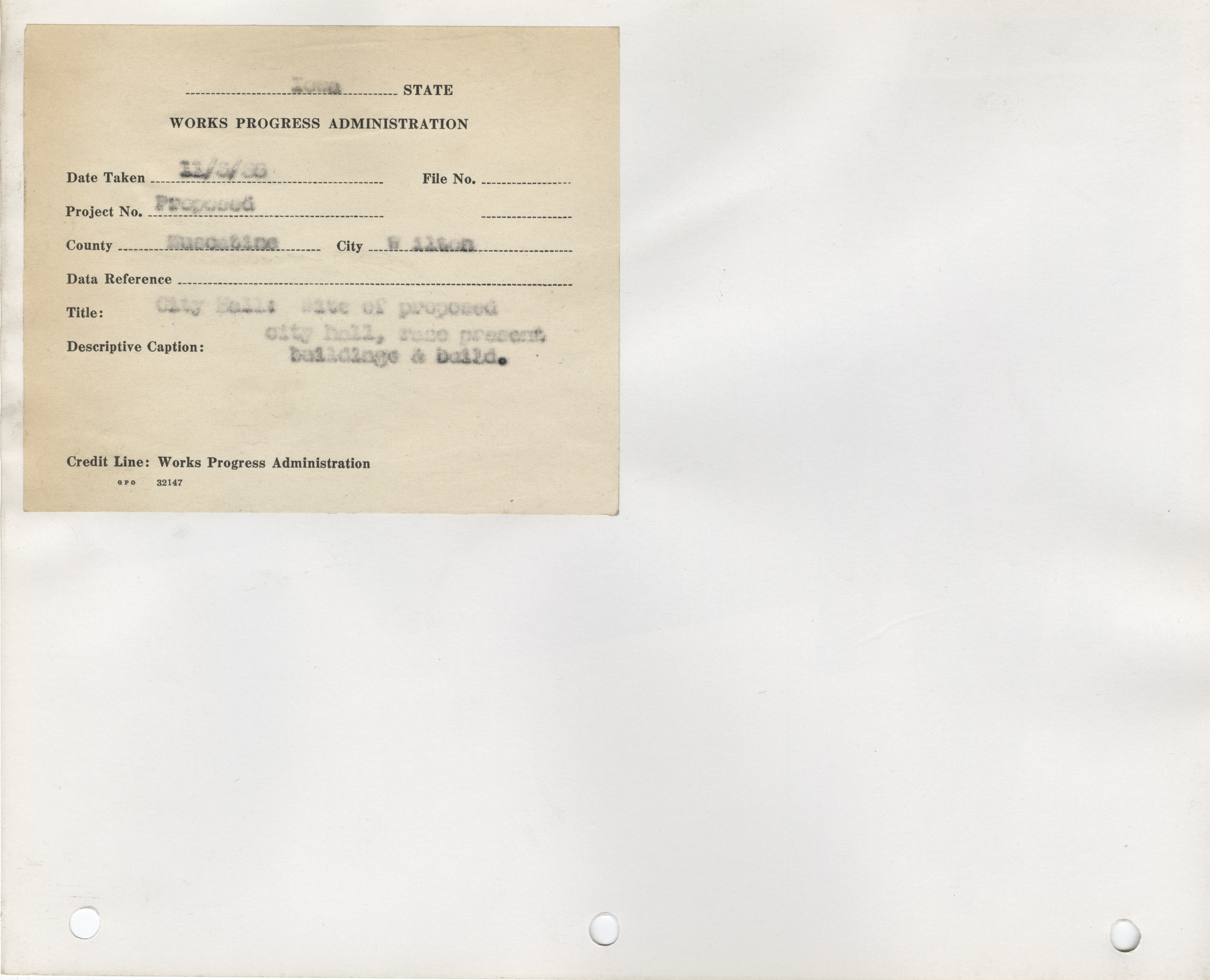 - Public Buildings. Muscatine County. Wilton. City Hall. Project 4411. (4 b/w photographs), 1938-1939