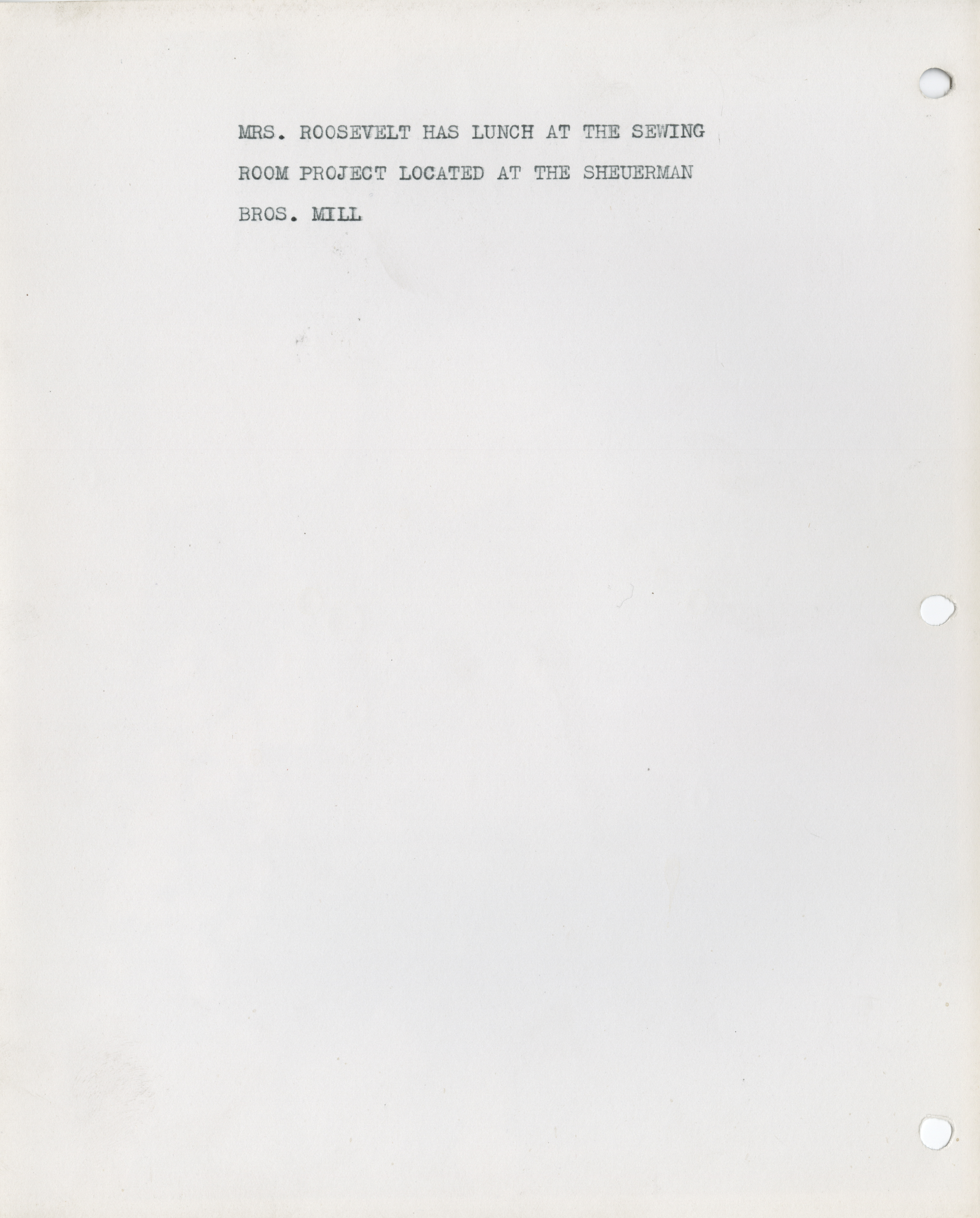- "Photograph of Eleanor Roosevelt having lunch at the Sheuerman Brothers Mill in Des Moines", Work Projects Administration (Iowa) Photographs, Iowa State University Library Digital Collections