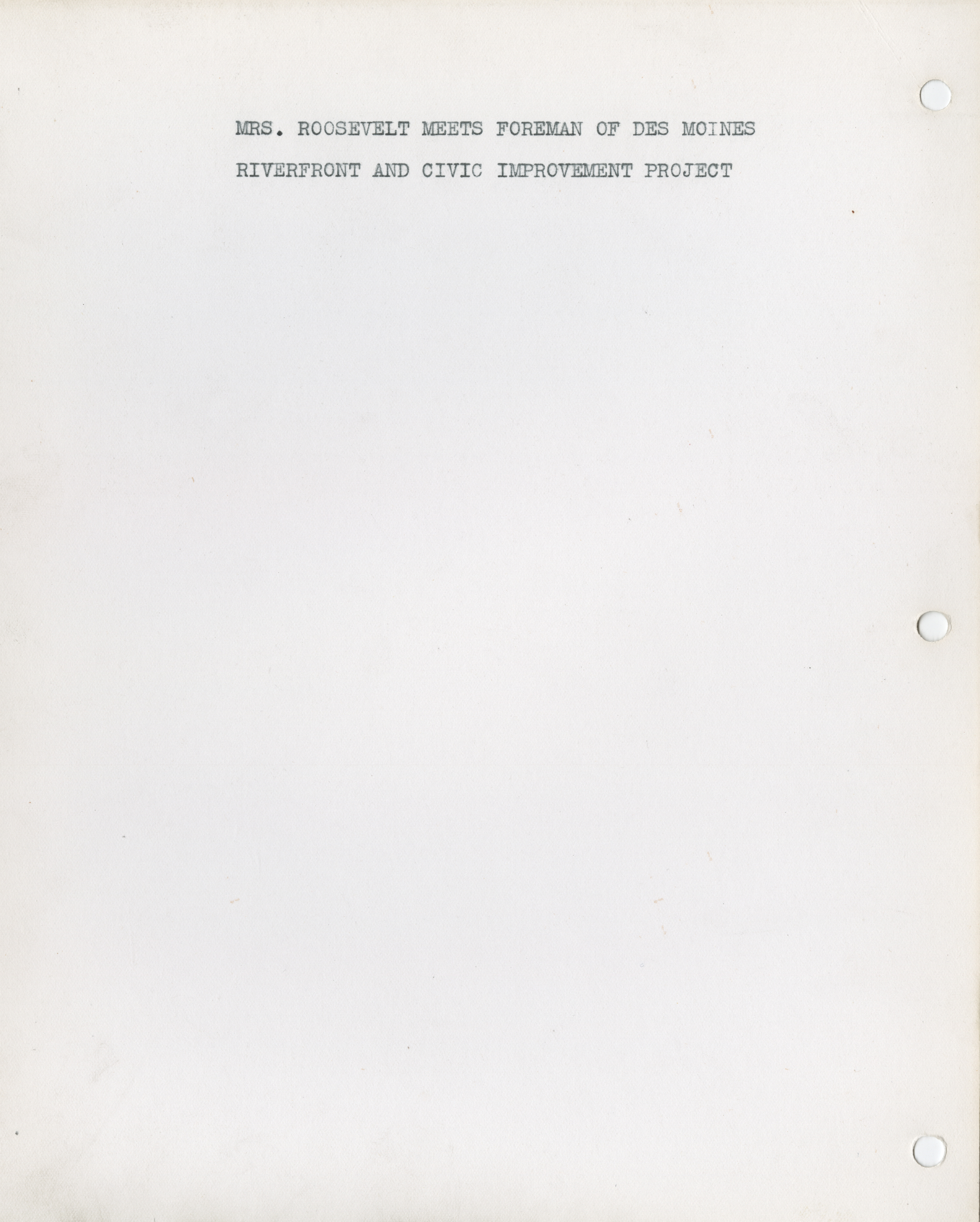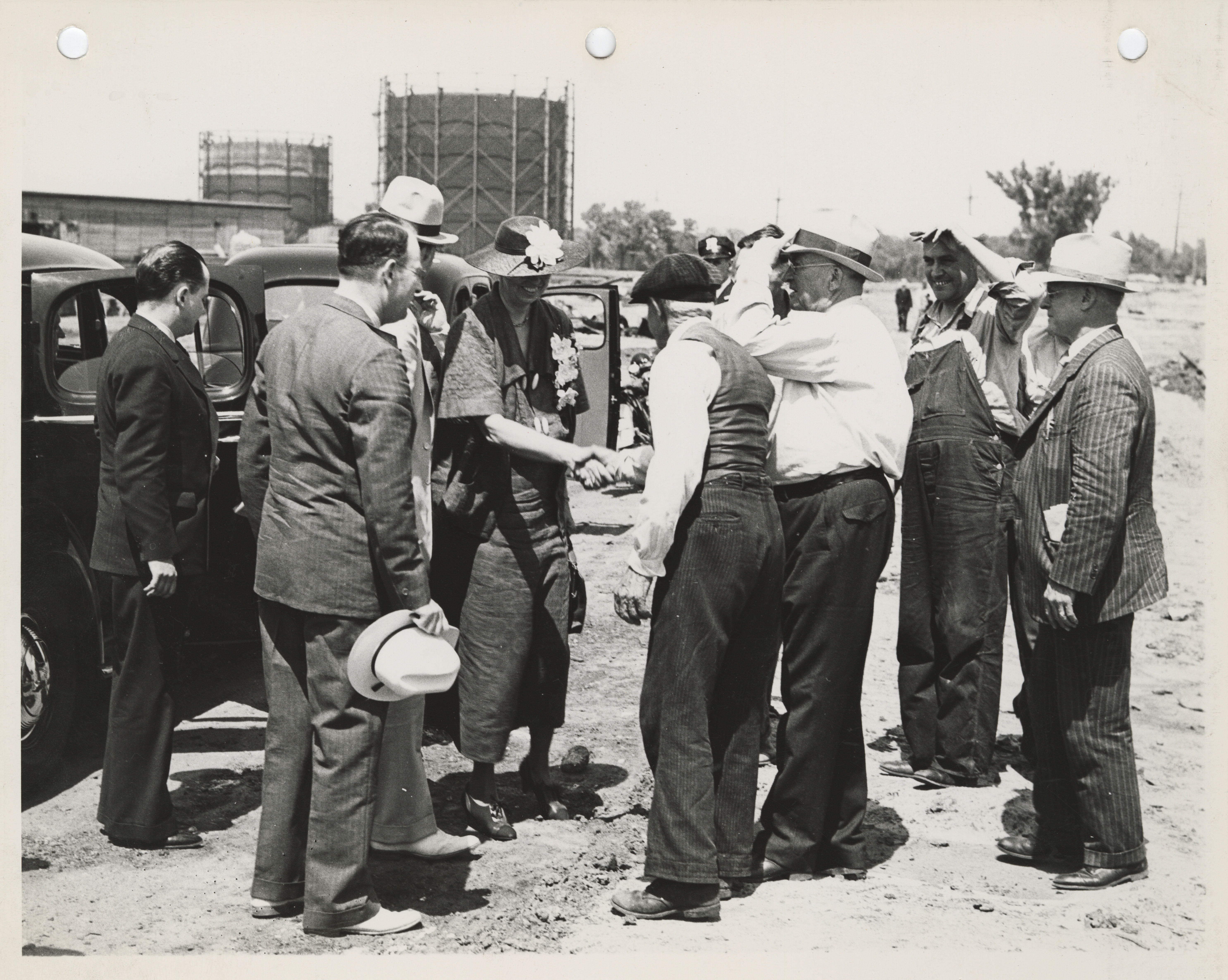 - "Photograph of Eleanor Roosevelt meeting the foreman of the riverfront project in Des Moines", Work Projects Administration (Iowa) Photographs, Iowa State University Library Digital Collections