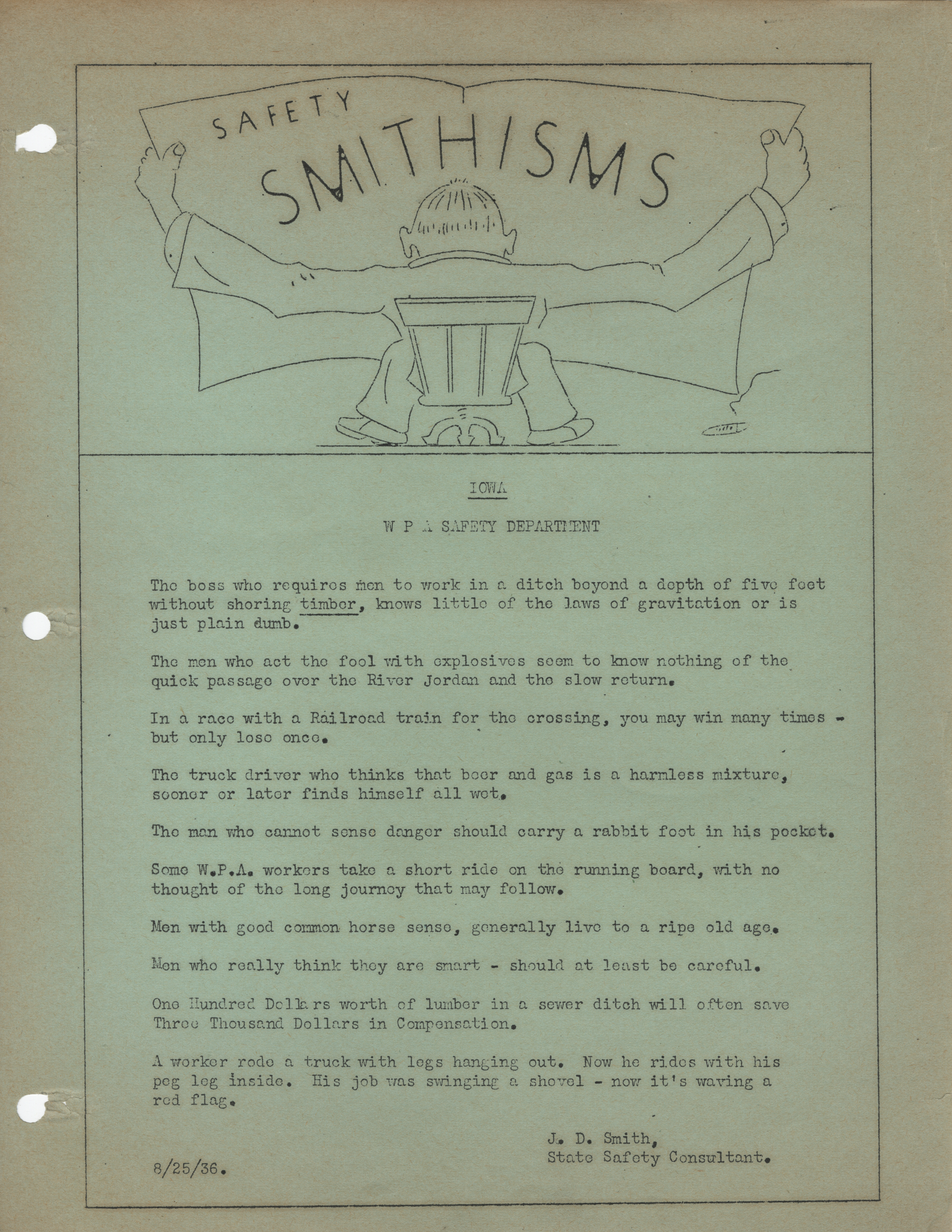 - "Safety Smithisms", Work Projects Administration (Iowa) Photographs, Iowa State University Library Digital Collections