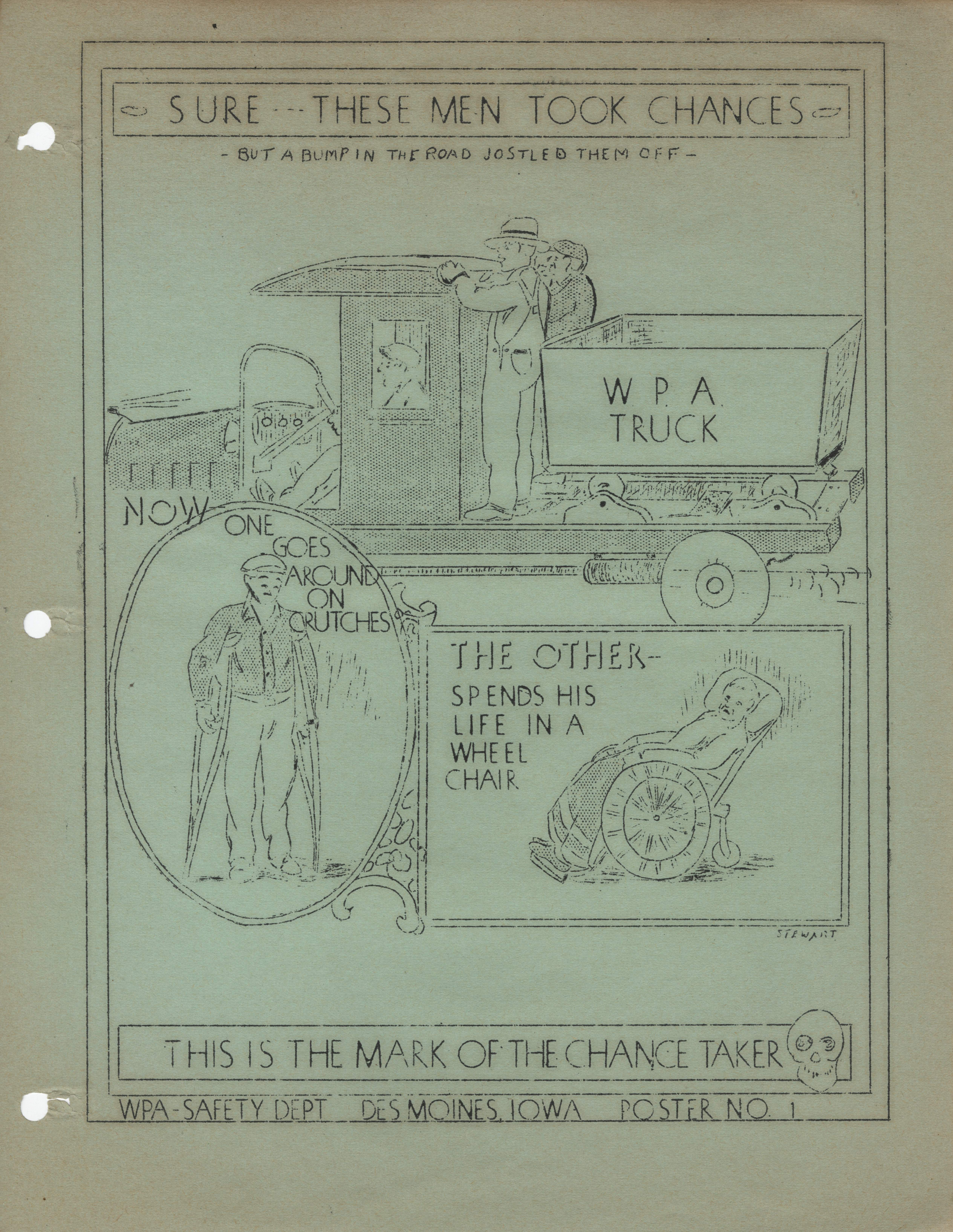 - "Safety poster no. 1", Work Projects Administration (Iowa) Photographs, Iowa State University Library Digital Collections