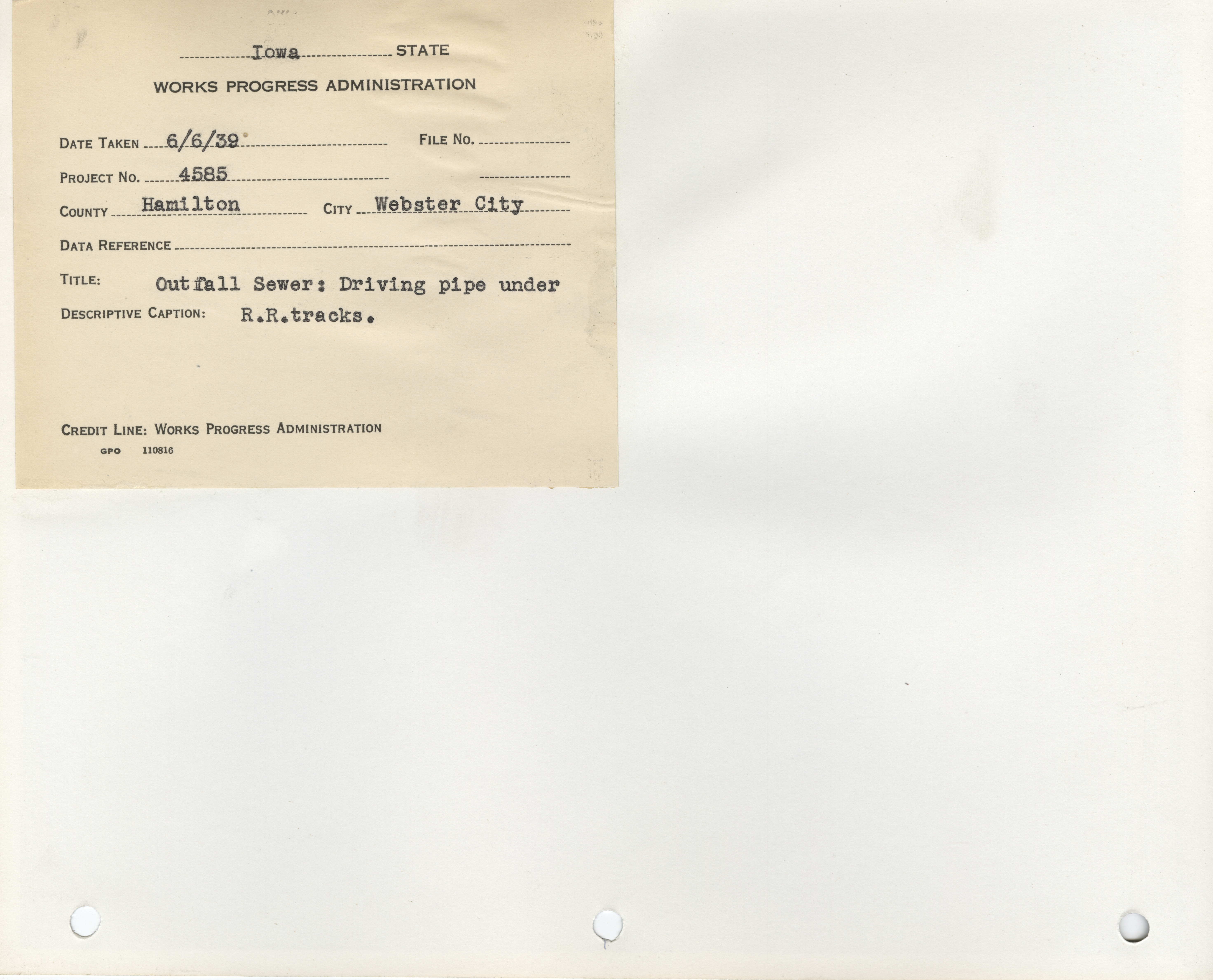 - Sanitation and Water Supply. Hamilton County. Webster City. Outfall Sewer. Project 4585. (8 b/w photographs), 1939