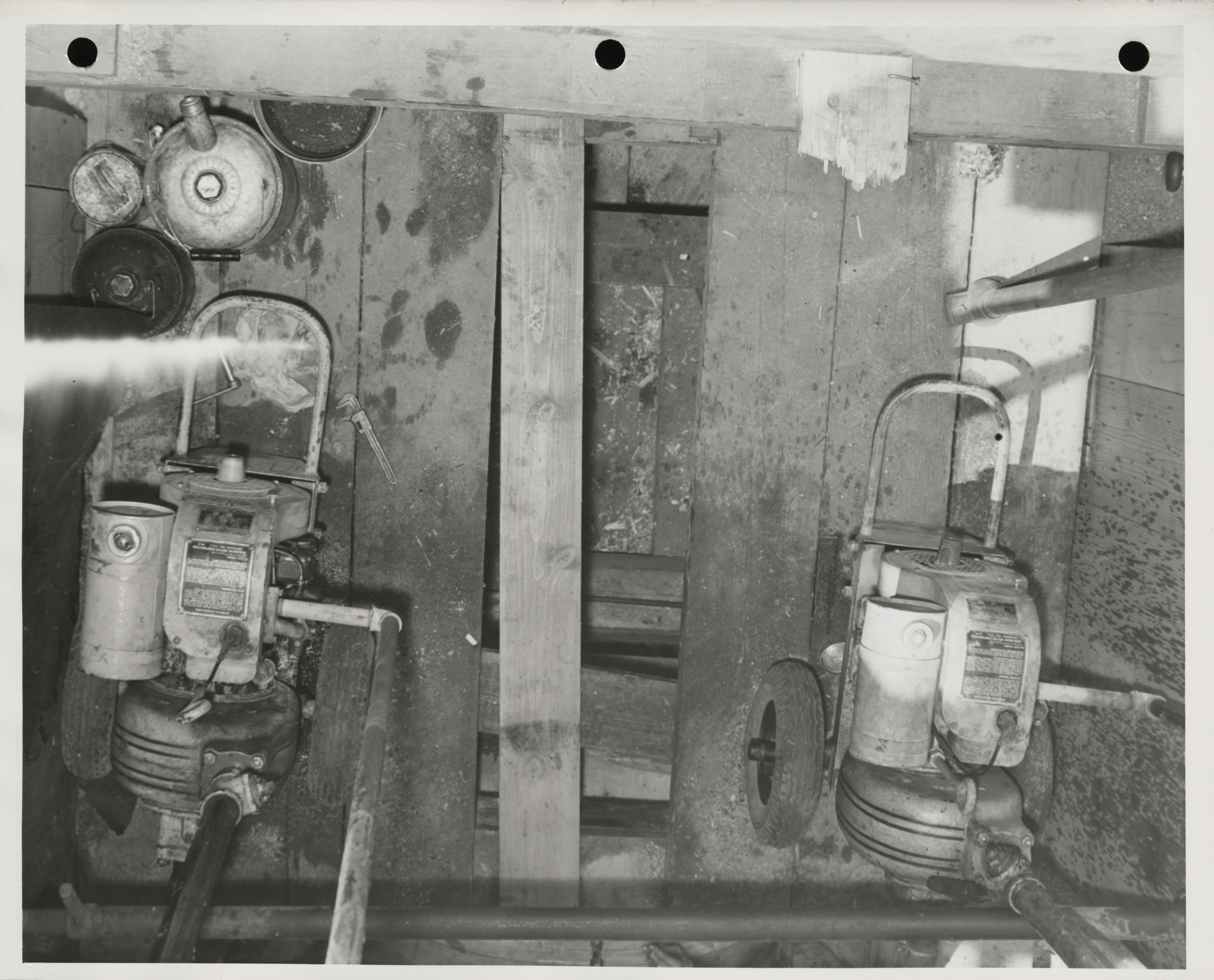 Photograph of water pumps used during construction of an outfall sewer in Webster City Item Info