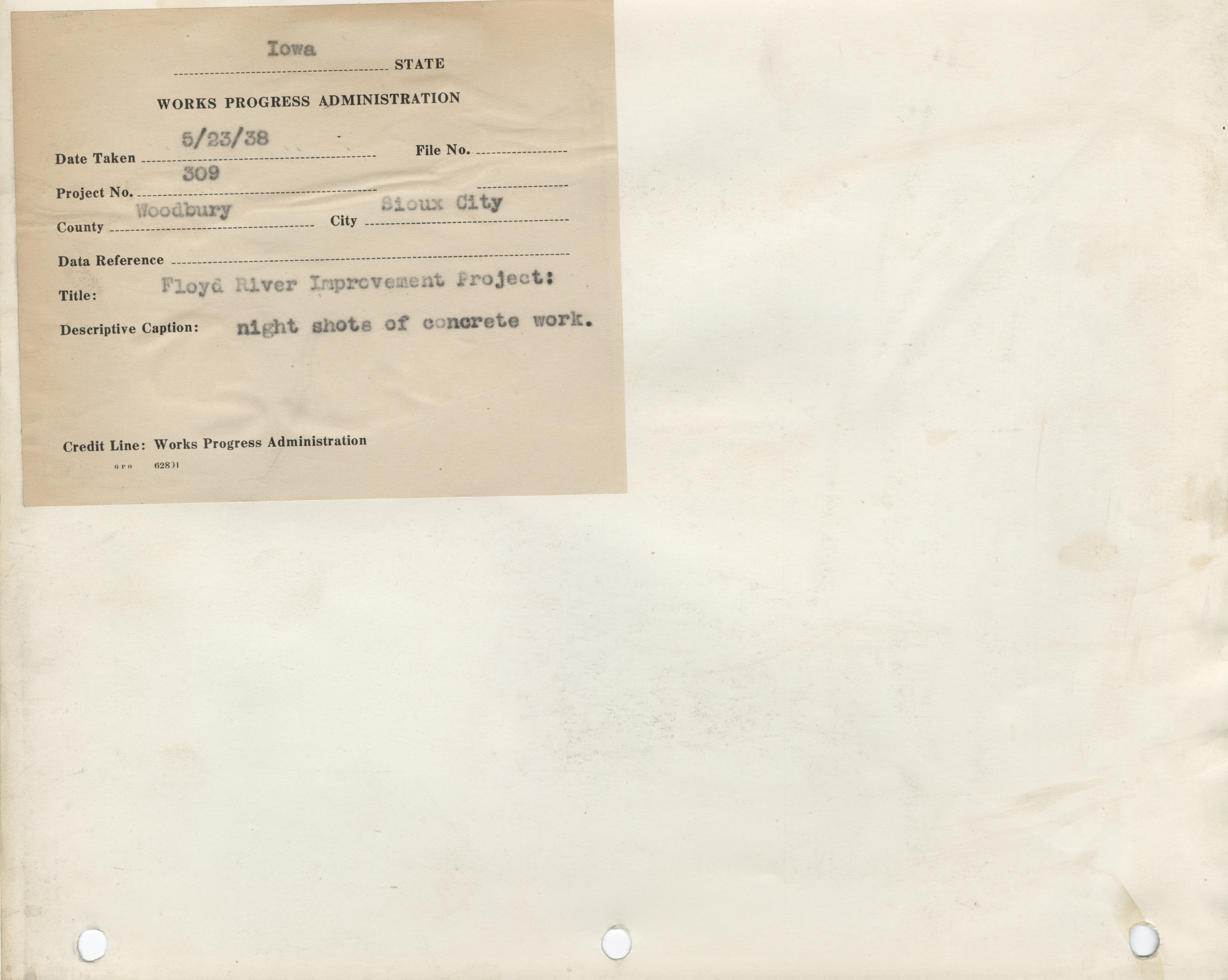 - Sanitation and Water Supply. Woodbury County. Sioux City. Floyd River Improvement Project. Project 309. (1 b/w photograph), 1938