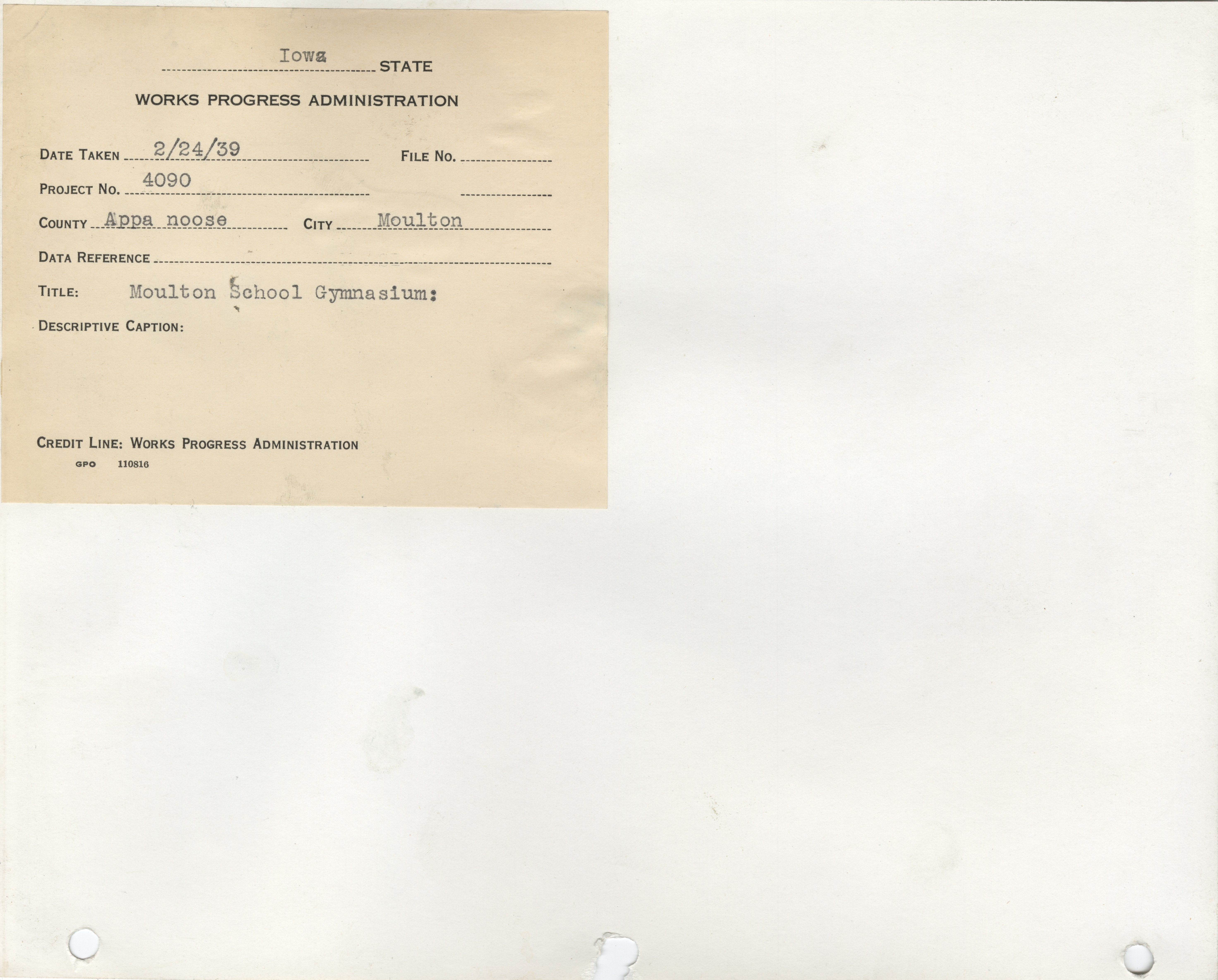 - "Photograph of a school gymnasium in Moulton", Work Projects Administration (Iowa) Photographs, Iowa State University Library Digital Collections