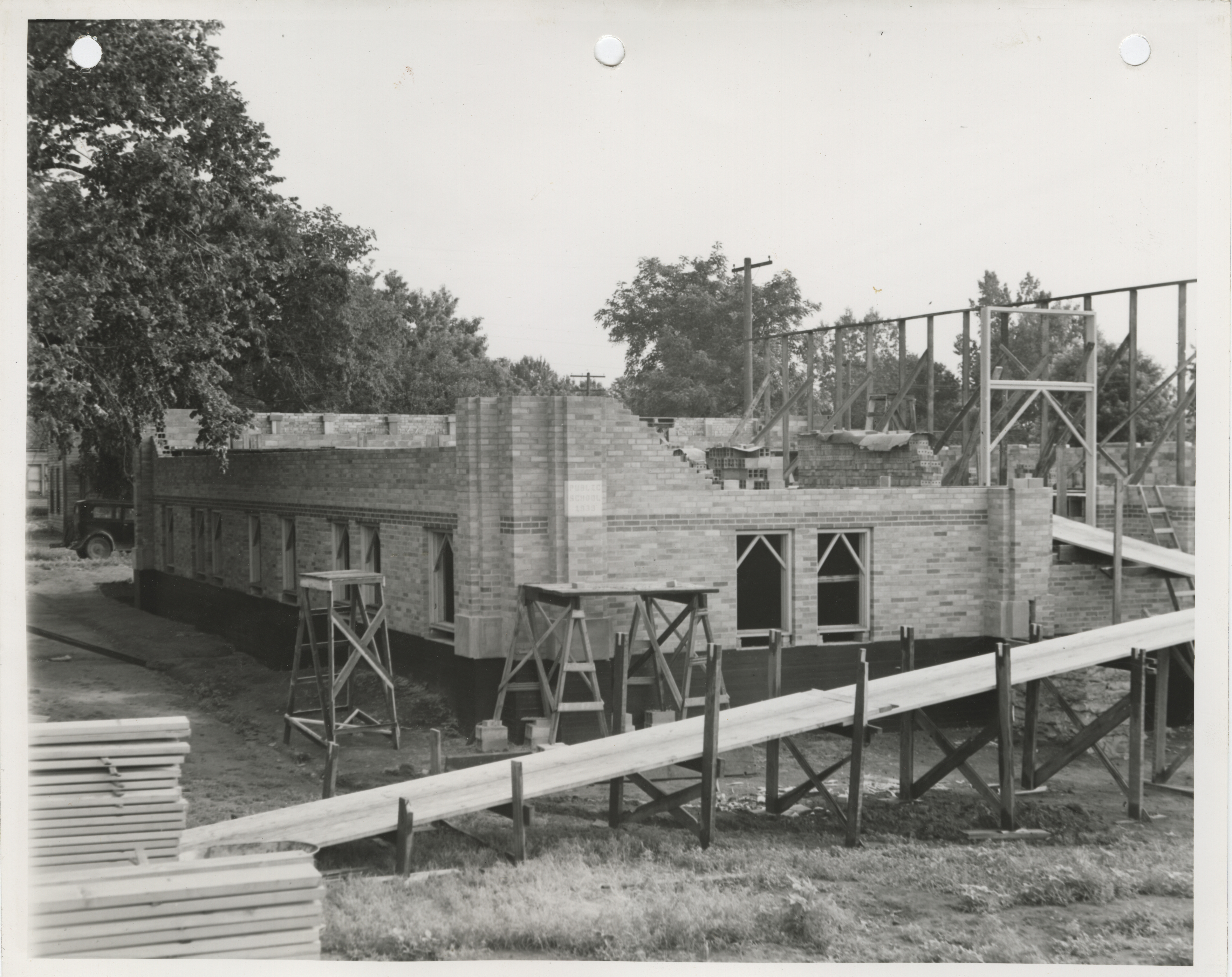 Photograph of school building construction in Arion Item Info