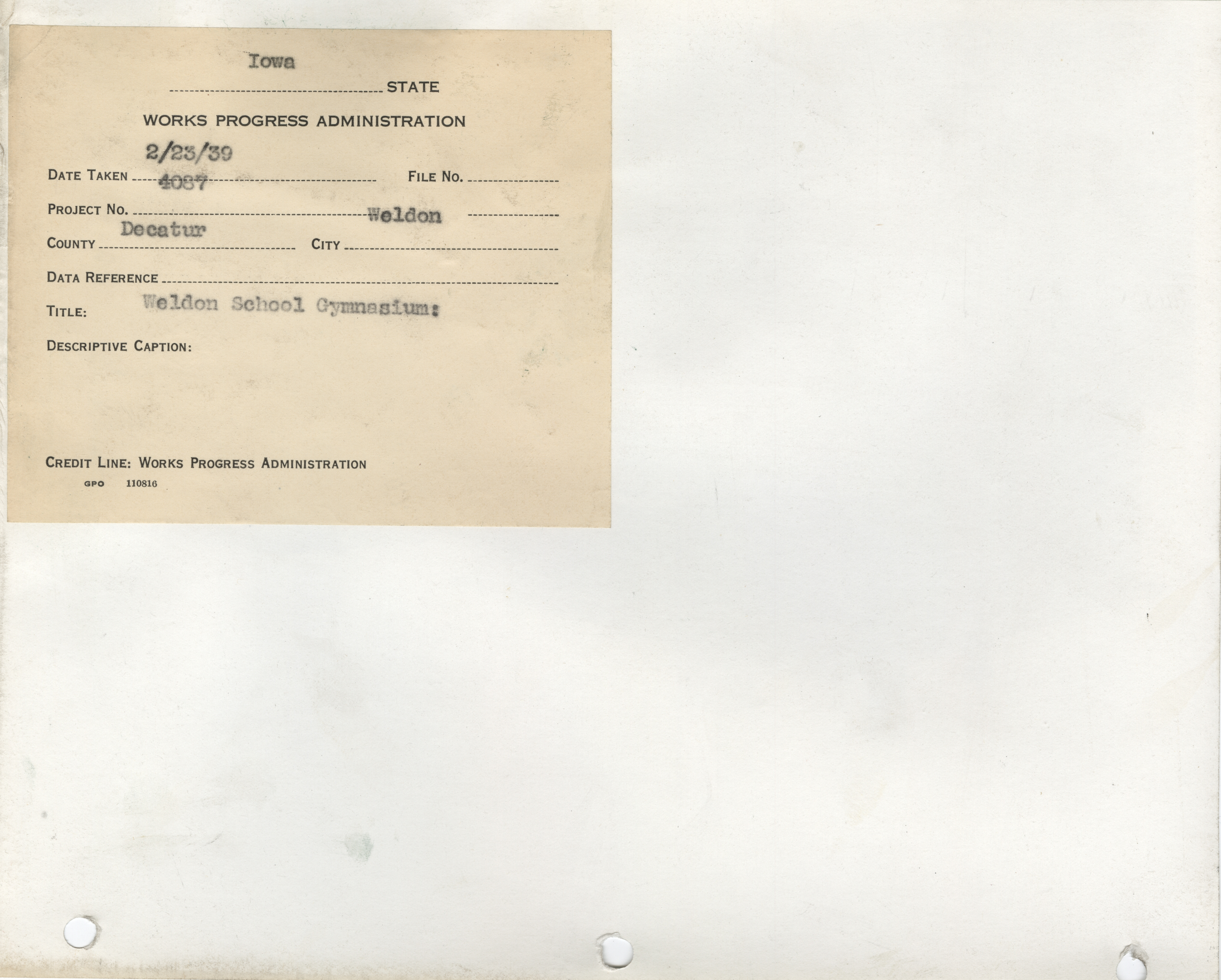 - "Photograph of a school gymnasium in Weldon", Work Projects Administration (Iowa) Photographs, Iowa State University Library Digital Collections