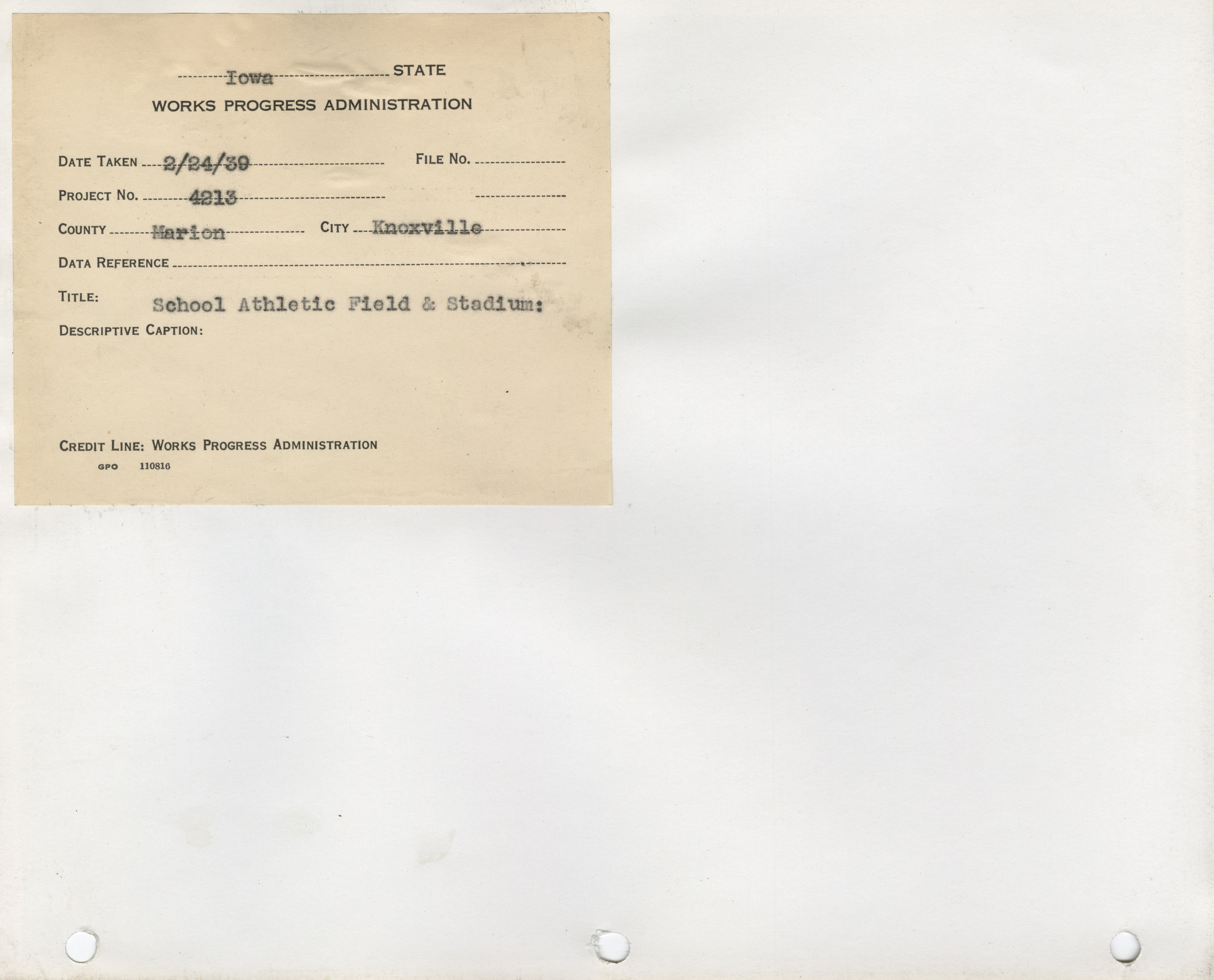 - School Buildings. Marion County. Knoxville. School Athletic Field and Stadium. Project 4213. (4 b/w photographs), 1938-1939