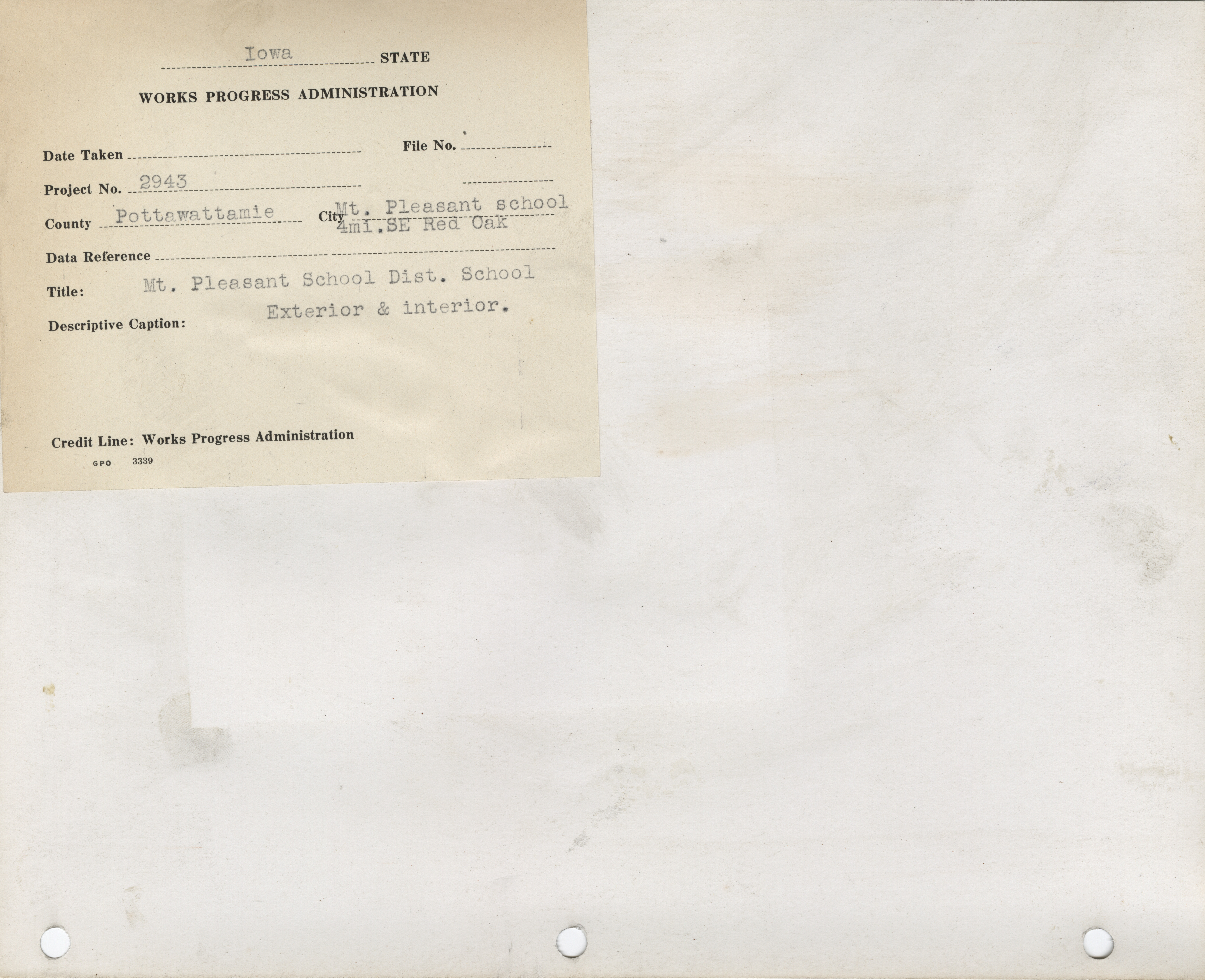 - "Photograph of a school building in Pottawattamie County", Work Projects Administration (Iowa) Photographs, Iowa State University Library Digital Collections