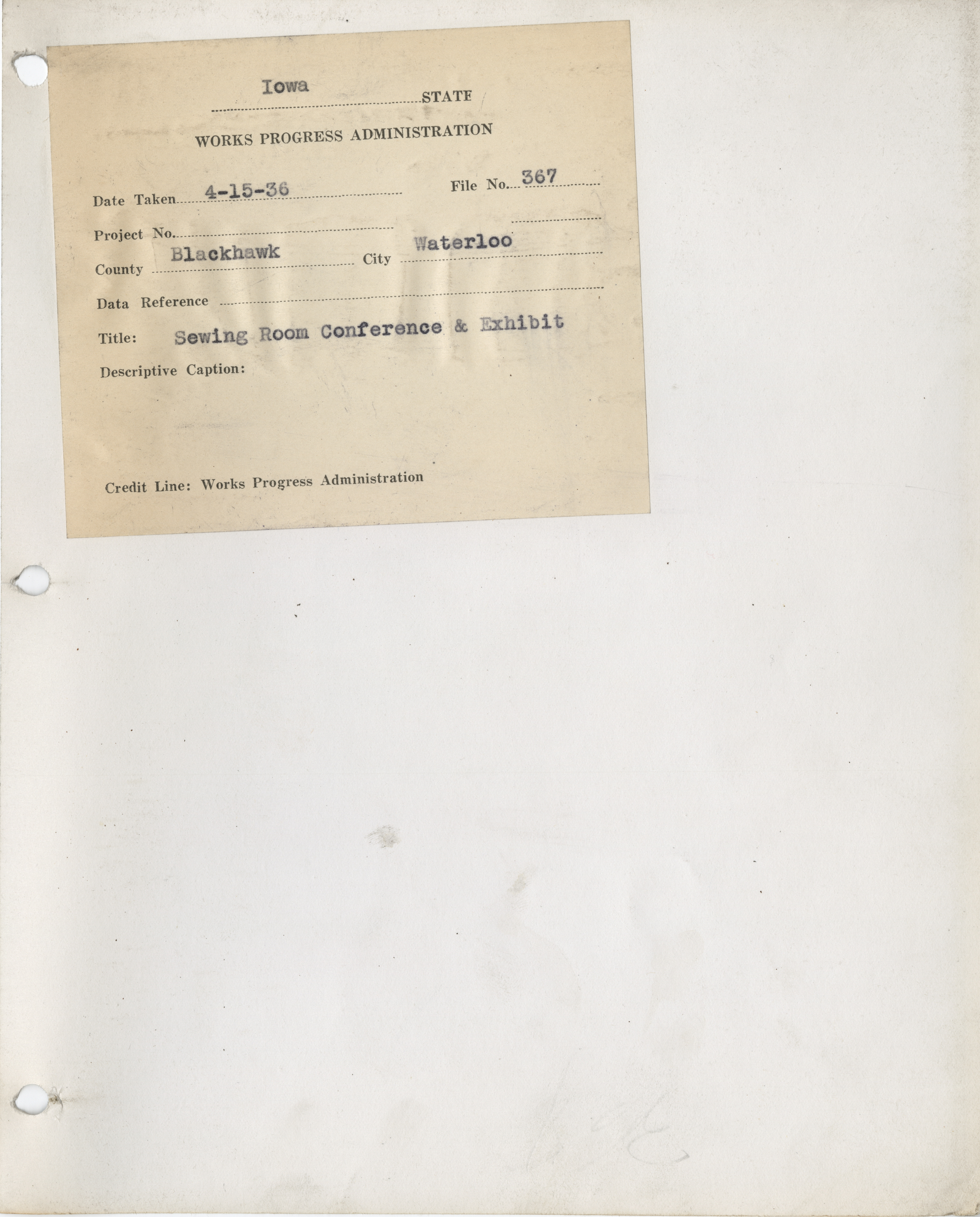 - Sewing Rooms. Black Hawk County. Waterloo. Sewing Room Conference and Exhibit. (4 b/w photographs), 1936