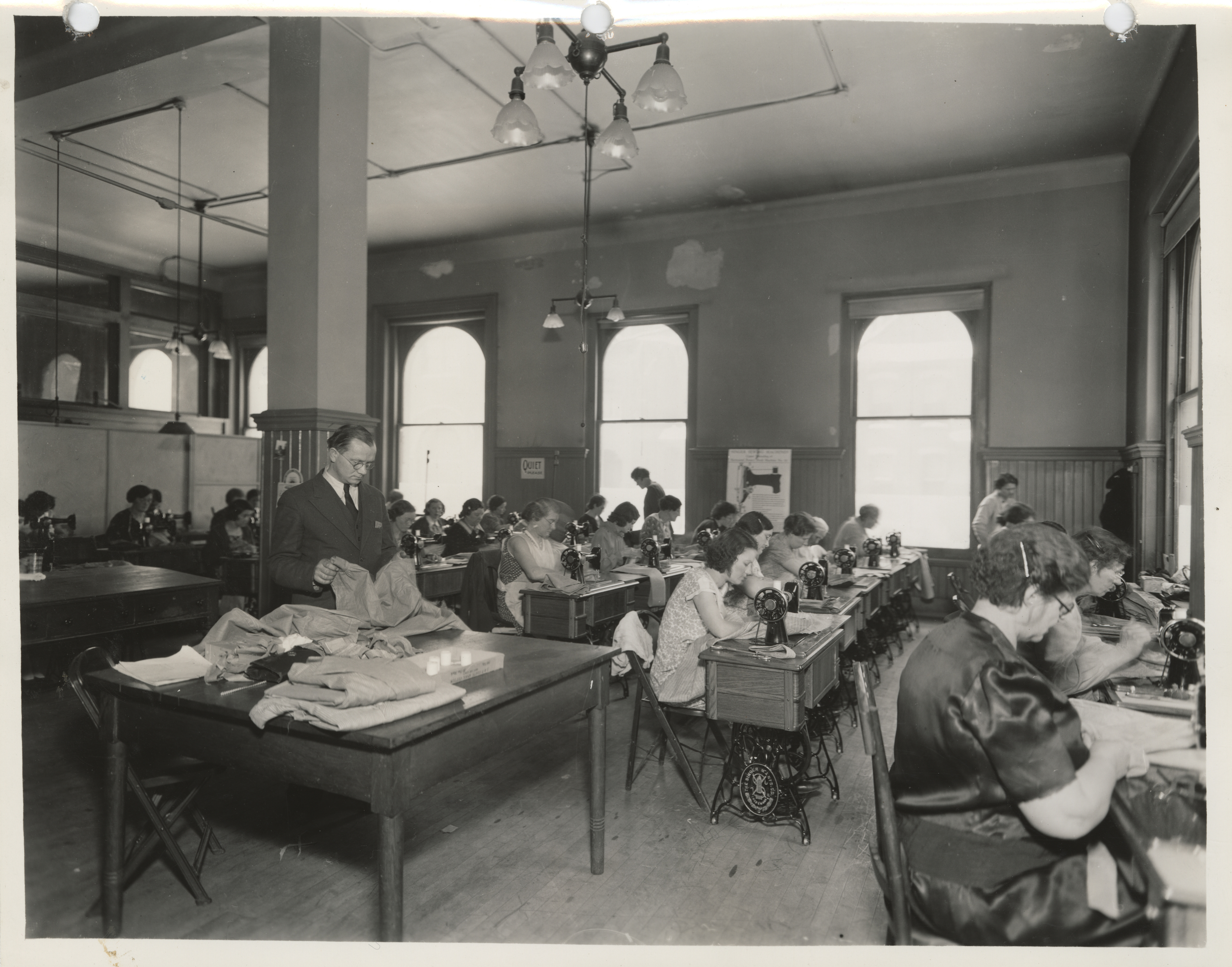 - "Photograph of people in the machine section of a sewing room in Dubuque", Work Projects Administration (Iowa) Photographs, Iowa State University Library Digital Collections