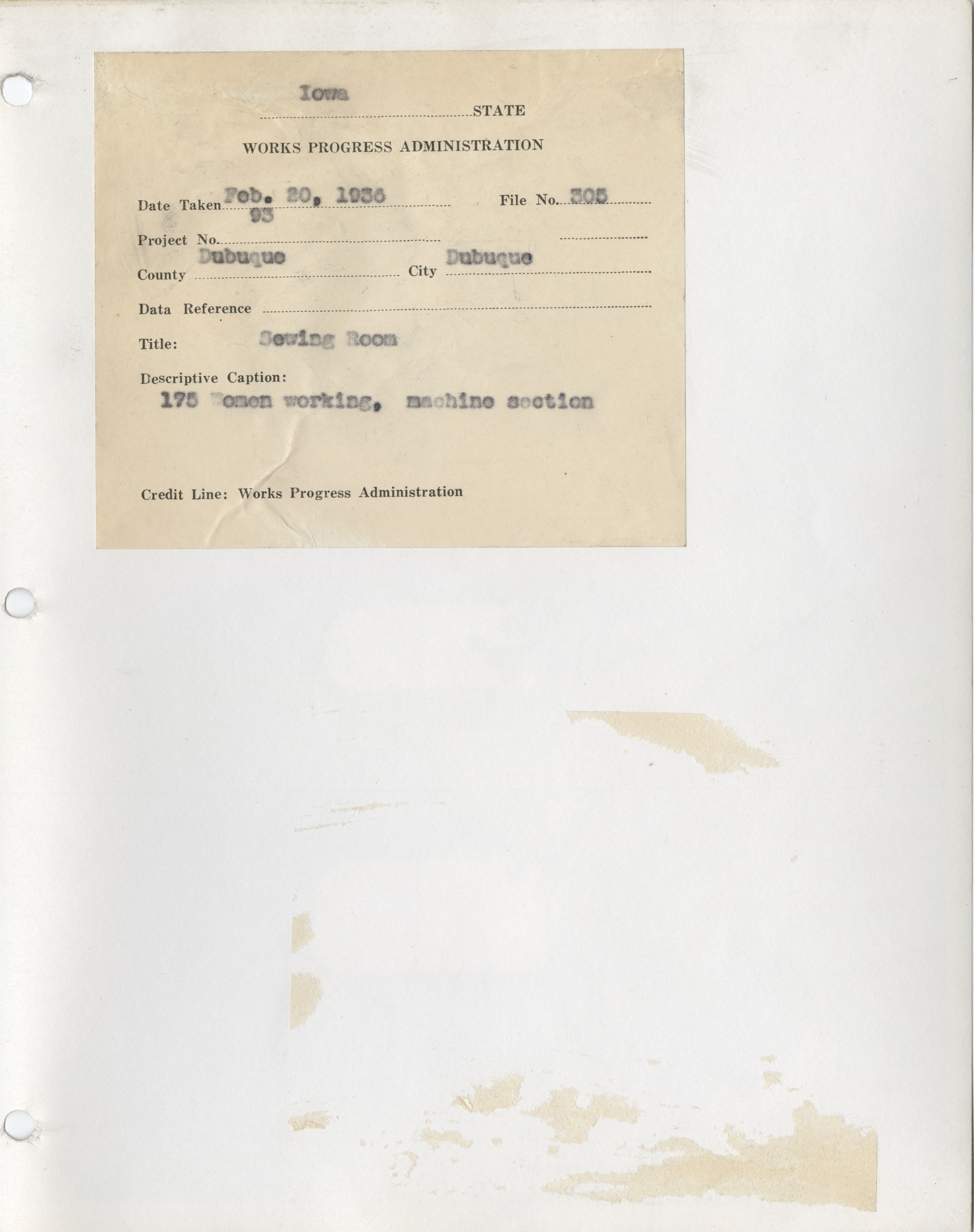 - Sewing Rooms. Dubuque County. Dubuque. County Sewing Room. Project 93. (7 b/w photographs), 1936-1937