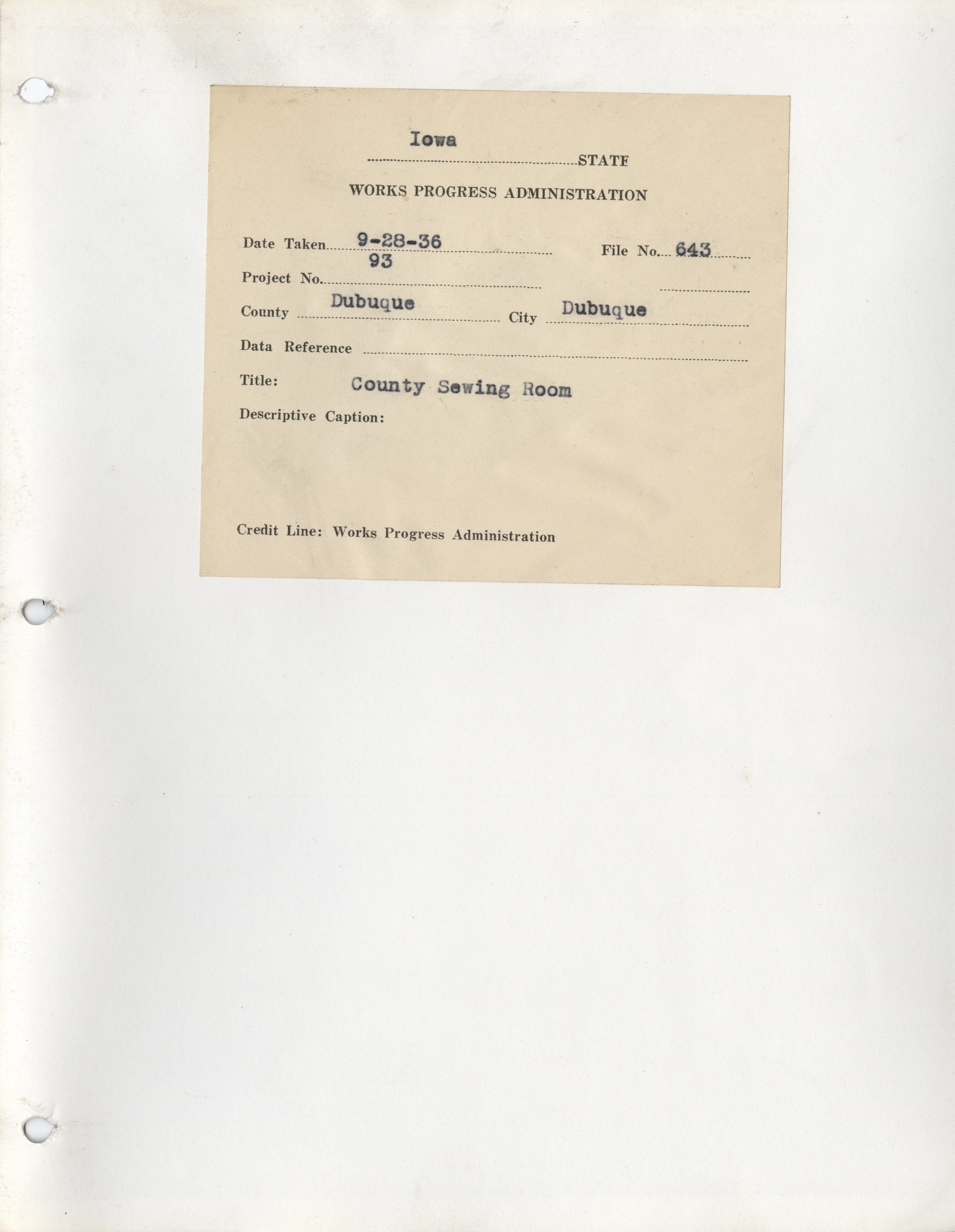- "Photograph of people in a county sewing room in Dubuque", Work Projects Administration (Iowa) Photographs, Iowa State University Library Digital Collections
