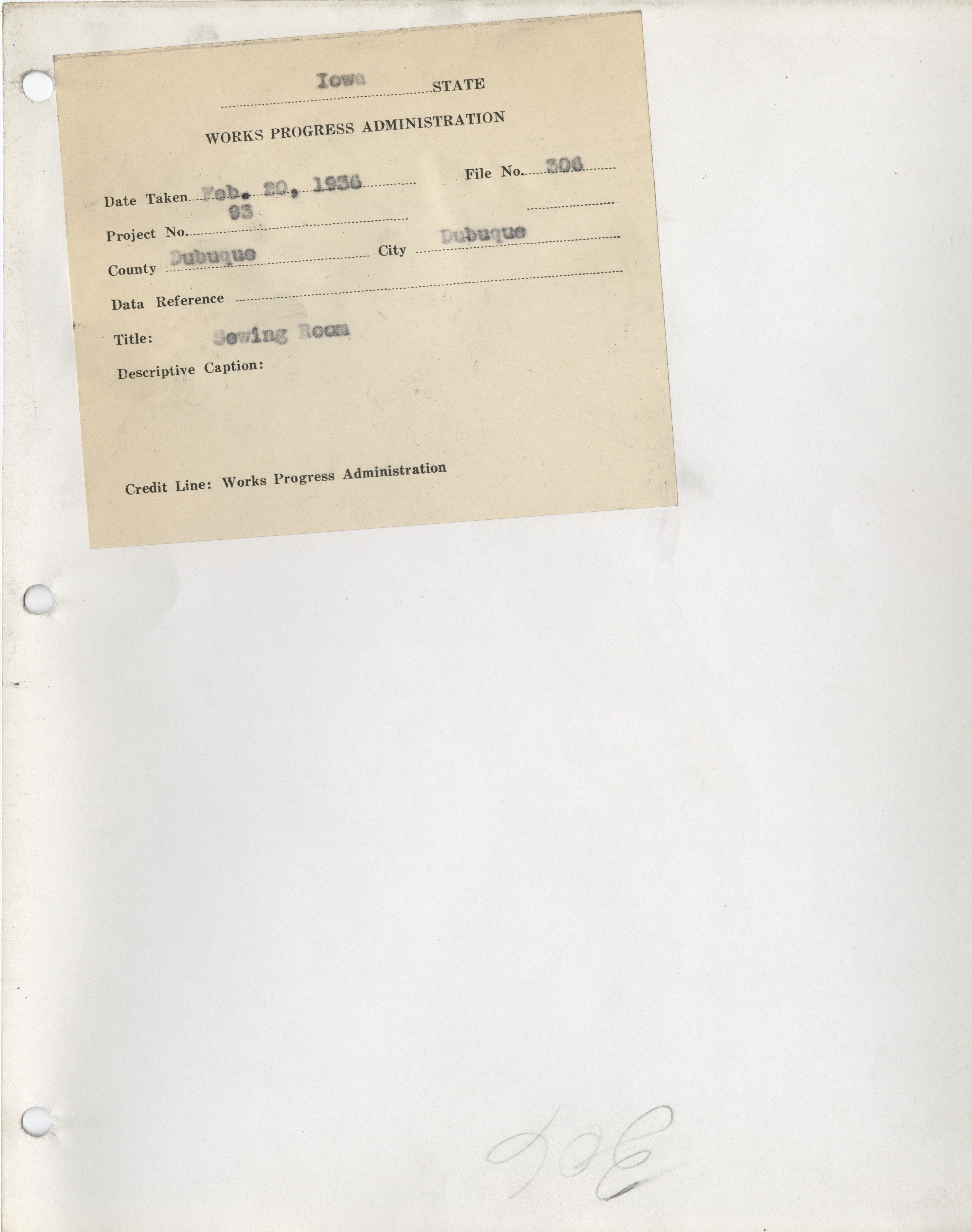 - "Photograph of people in a sewing room in Dubuque", Work Projects Administration (Iowa) Photographs, Iowa State University Library Digital Collections