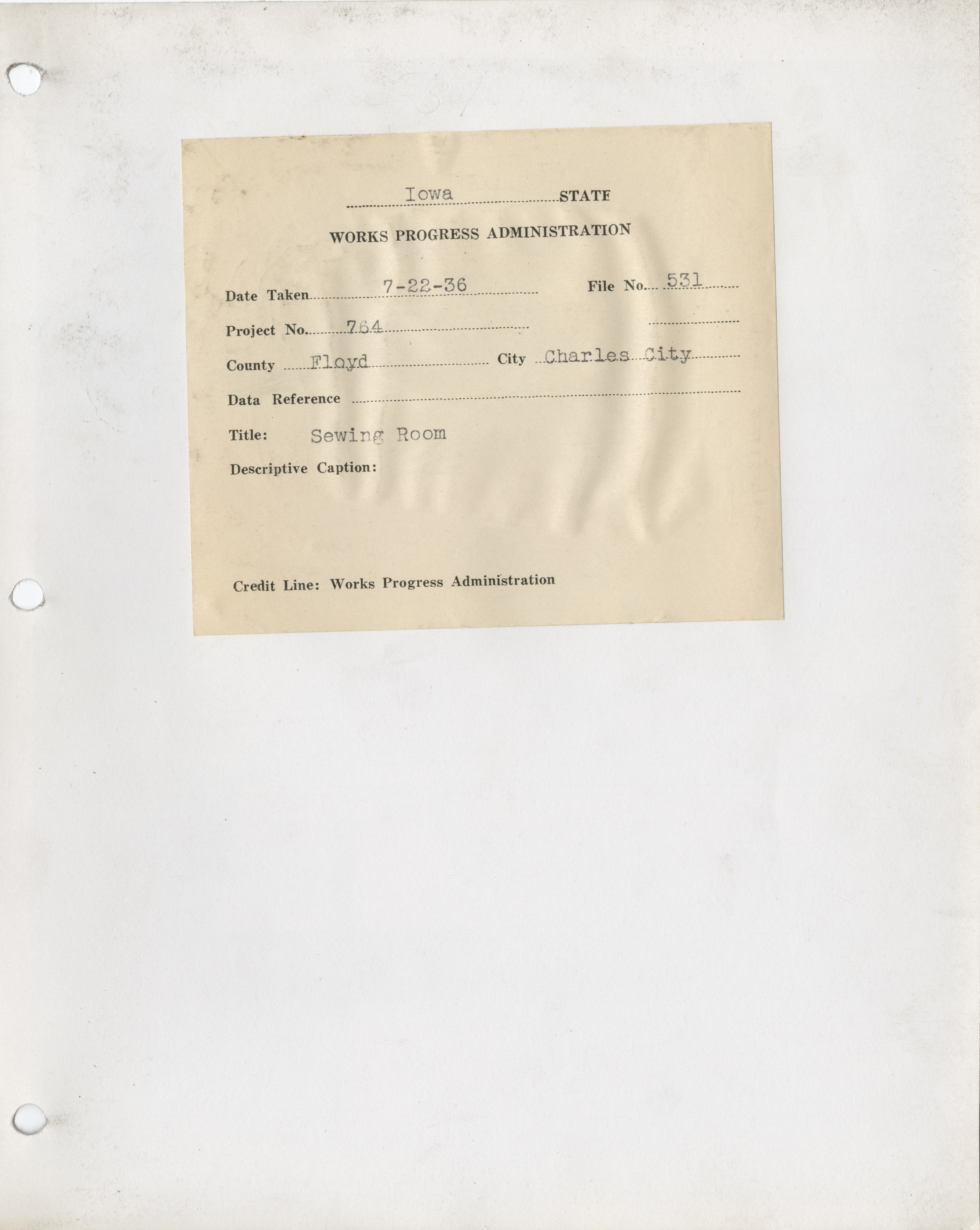 - Sewing Rooms. Floyd County. Charles City. Sewing Room. Project 764. (1 b/w photograph), 1936
