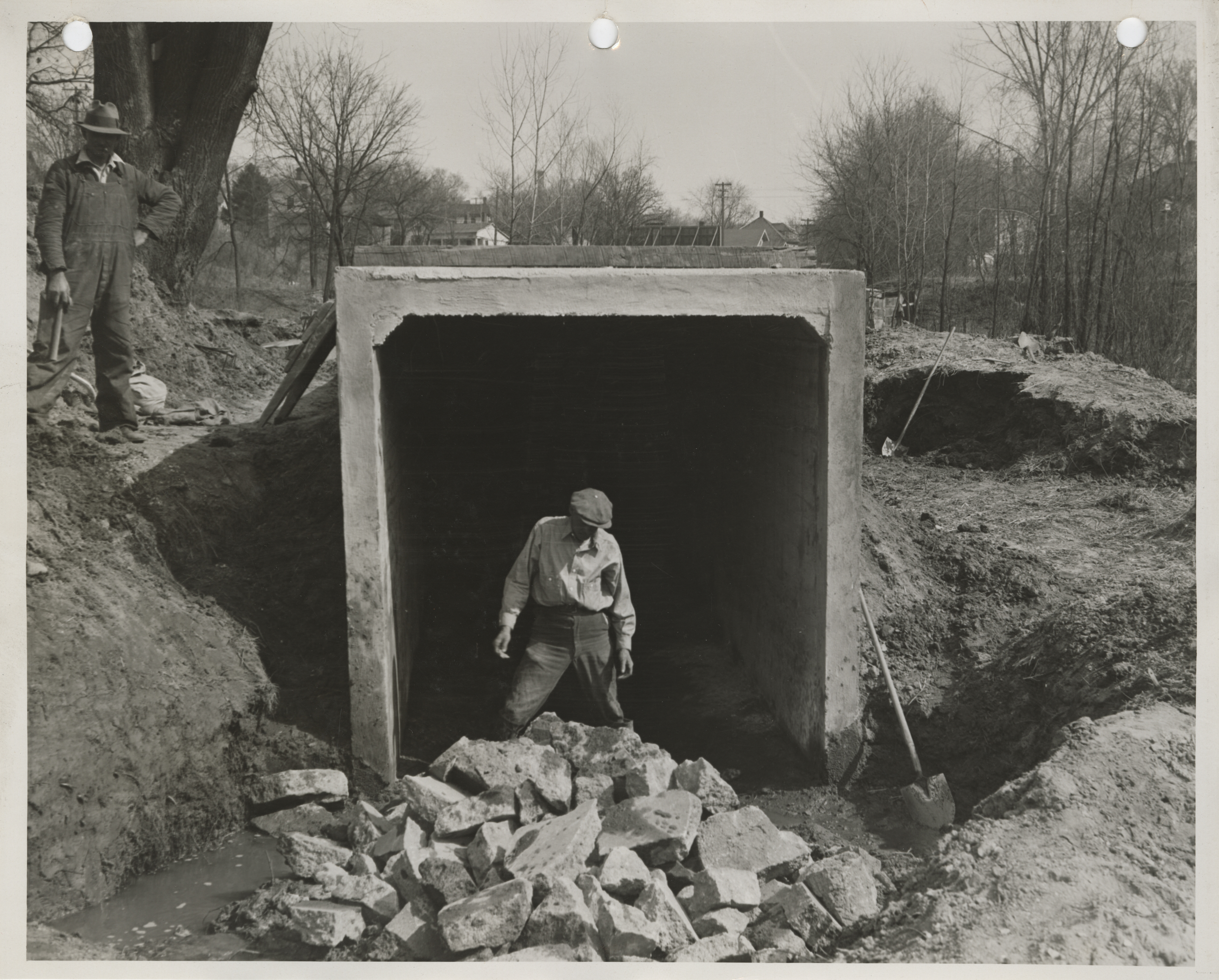 - "Photograph of people constructing a storm sewer in Muscatine", Work Projects Administration (Iowa) Photographs, Iowa State University Library Digital Collections