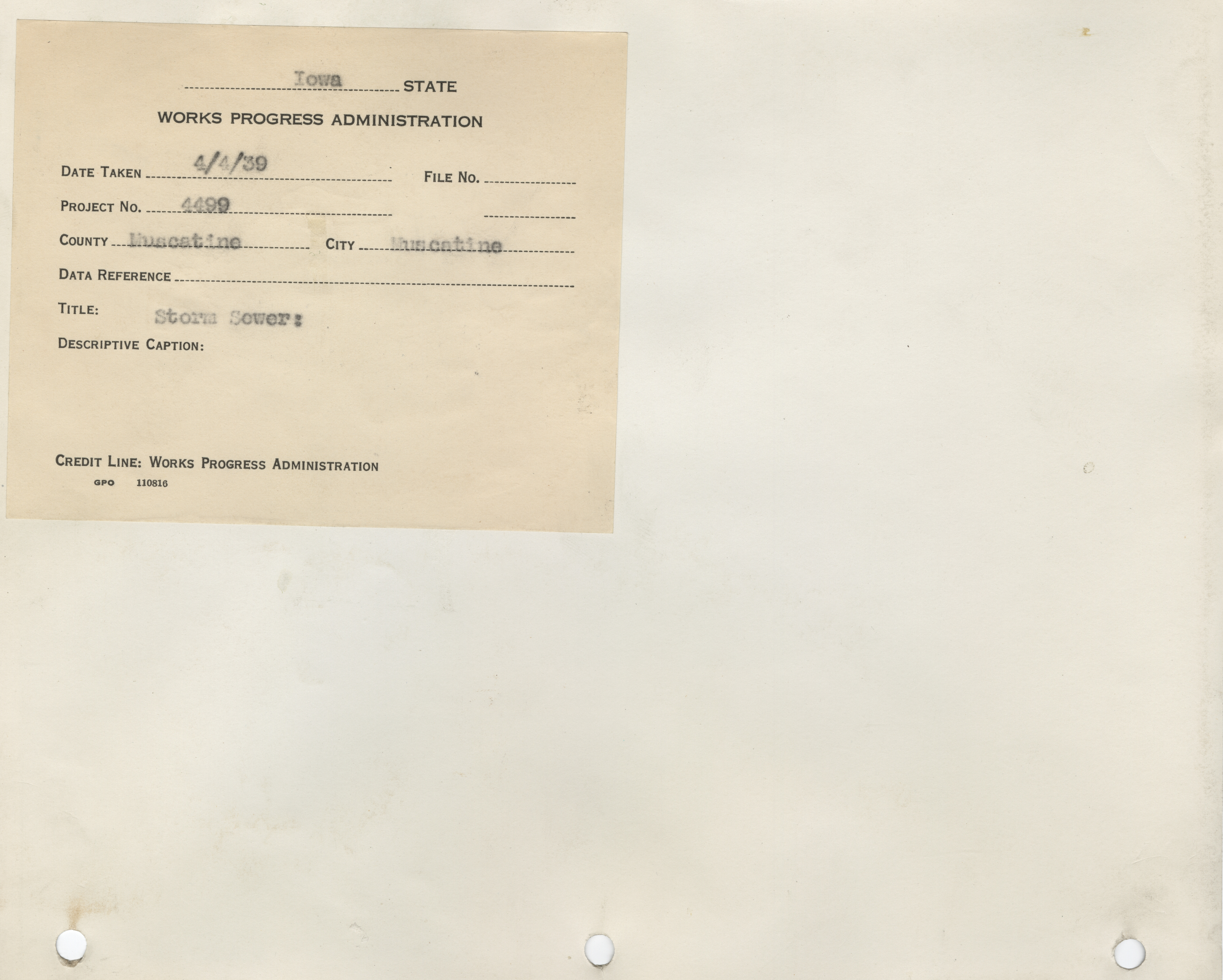 - Sanitation and Water Supply. Muscatine County. Muscatine. Sewer. Project 4499. (2 b/w photographs), 1939