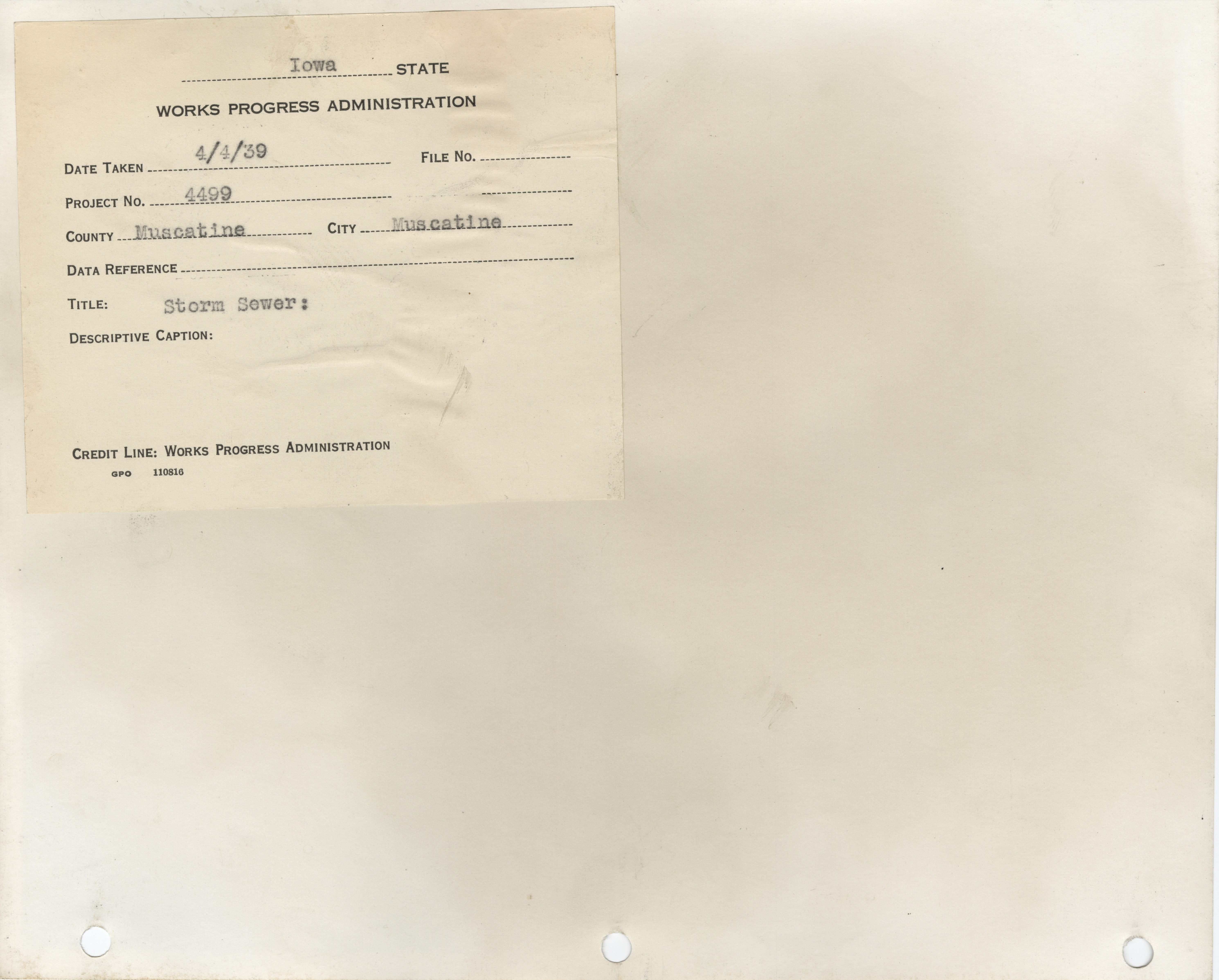 - Sanitation and Water Supply. Muscatine County. Muscatine. Sewer. Project 4499. (2 b/w photographs), 1939